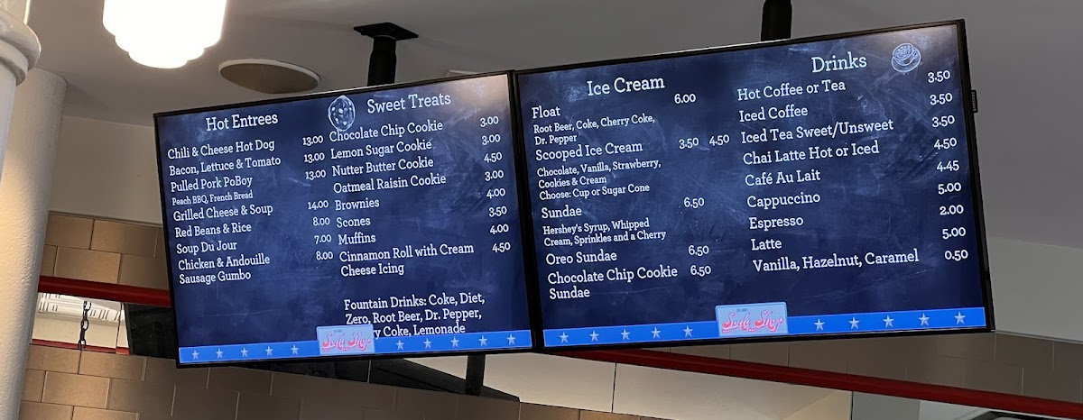 Drinks follow suit with uncomplicated, classic soda shop choices, making them an easy complement to your meal or dessert. Overall, the menu fits well with the friendly, nostalgic vibe of the shop, inviting guests to enjoy simple, satisfying flavors in a welcoming spot to pause and refresh.
